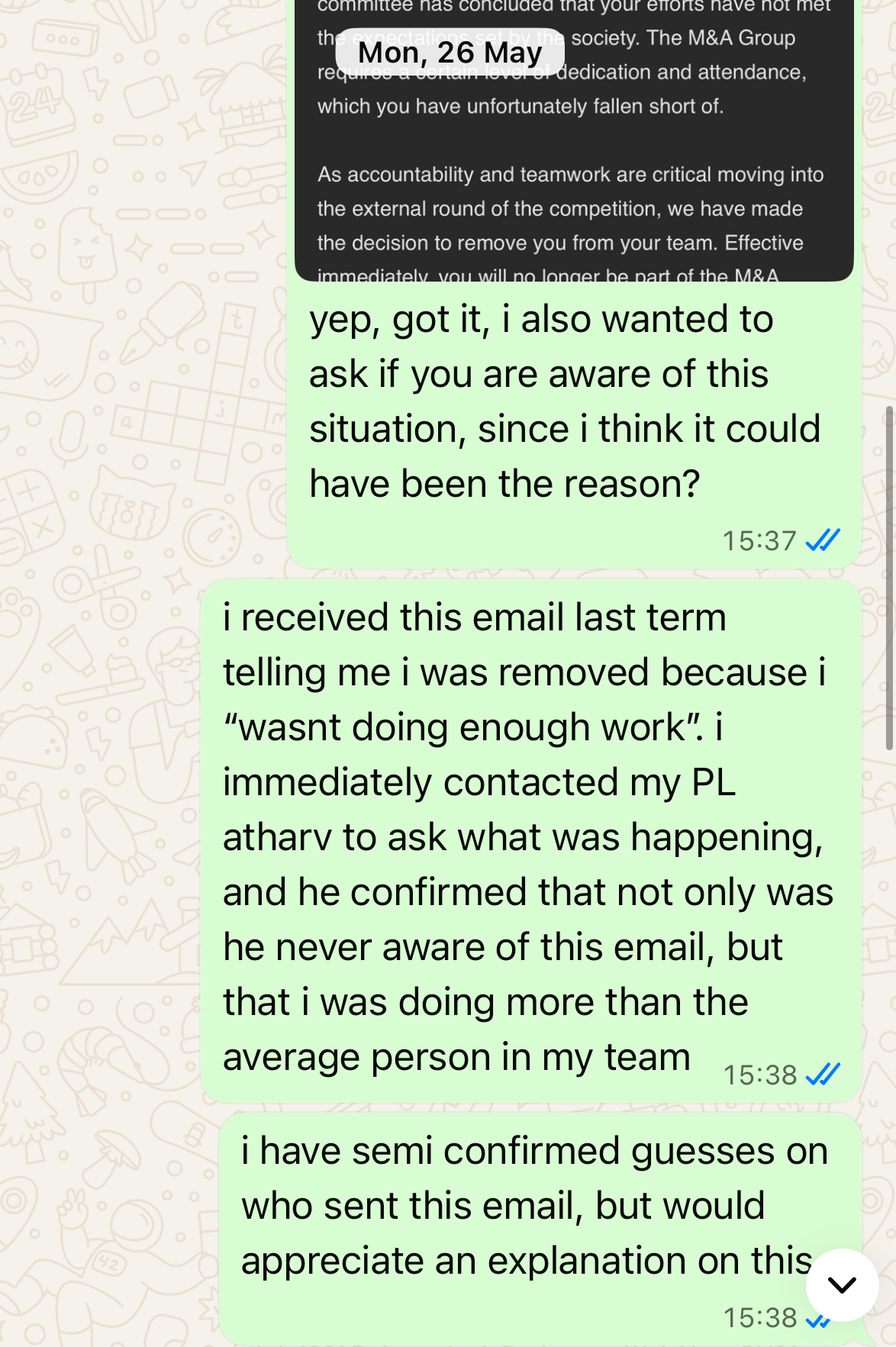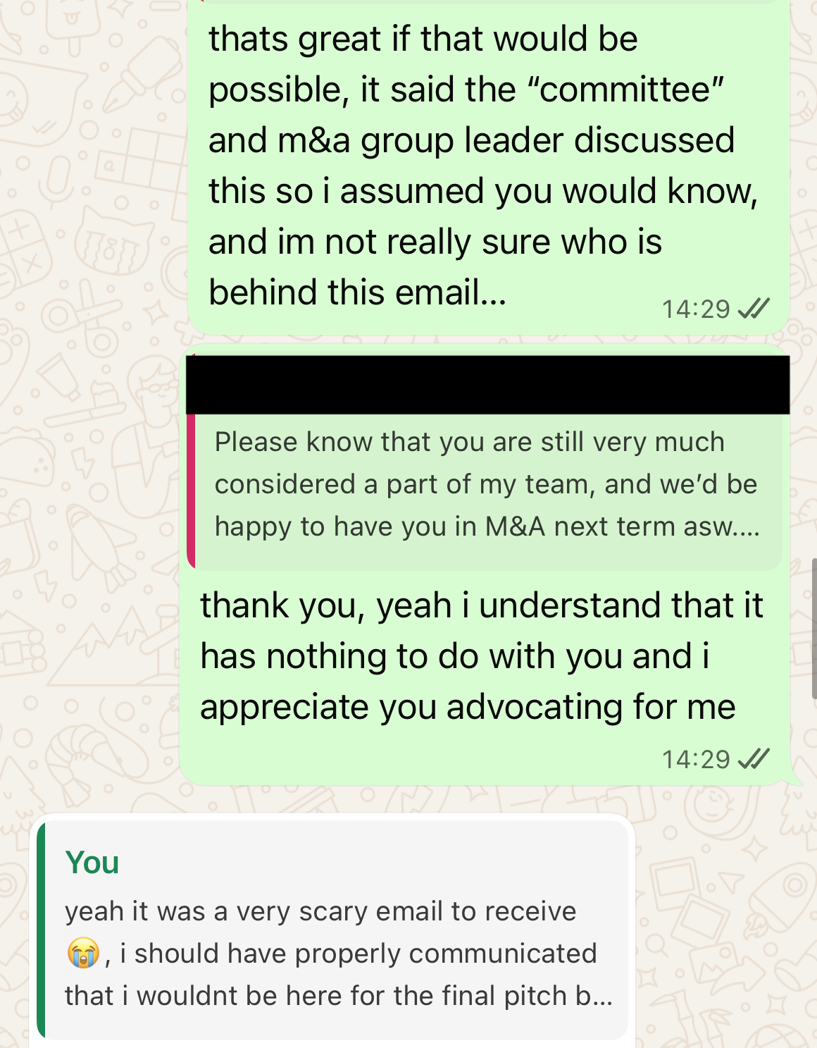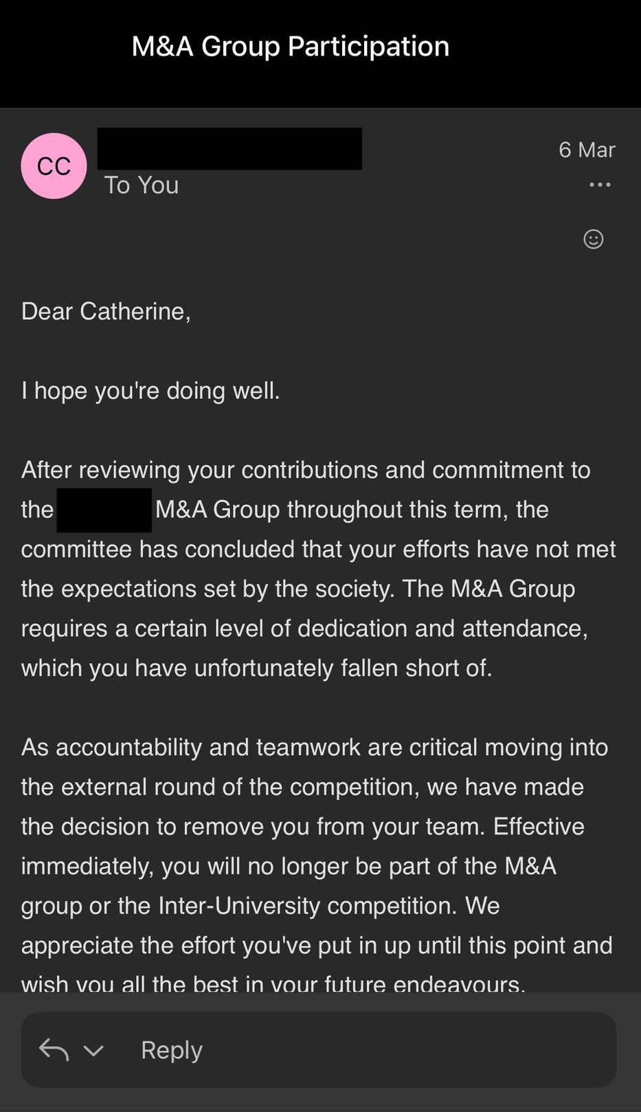 My team leader was very supportive and nice about it, but I wanted a clear explanation from the organisation as to who sent this email and why this happened, so I reached out to the Managing Director for M&A
