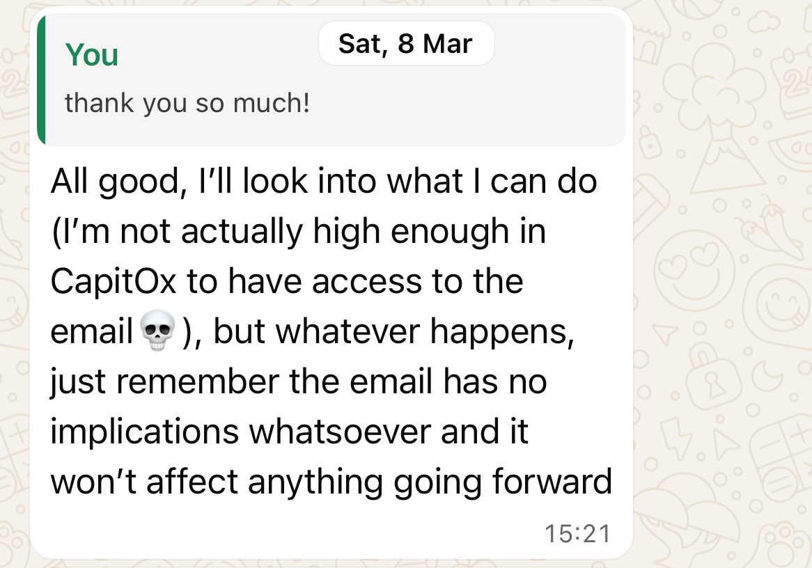 - For me to not message an MD of the finance society asking for an explanation