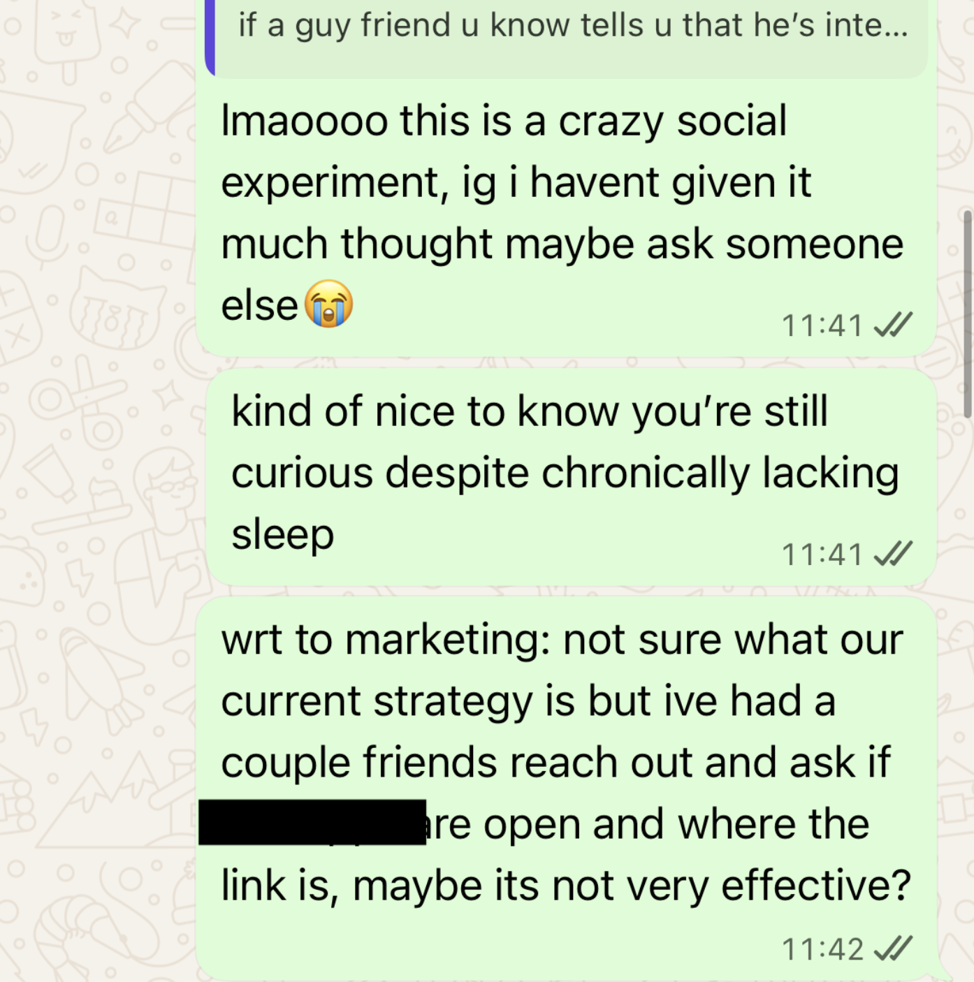 I wanted to highlight how this act may seem harmless (it looks like he’s just shooting his shot indirectly and vaguely). In any professional/semi-professional setting, especially one as big and prestigious as finance and consulting in Oxford, there is an inherent power dynamic. He had a large influence over my opportunities, my responsibilities, my reputation, and my future within that society and in the workplace (since we had strong industry connections).